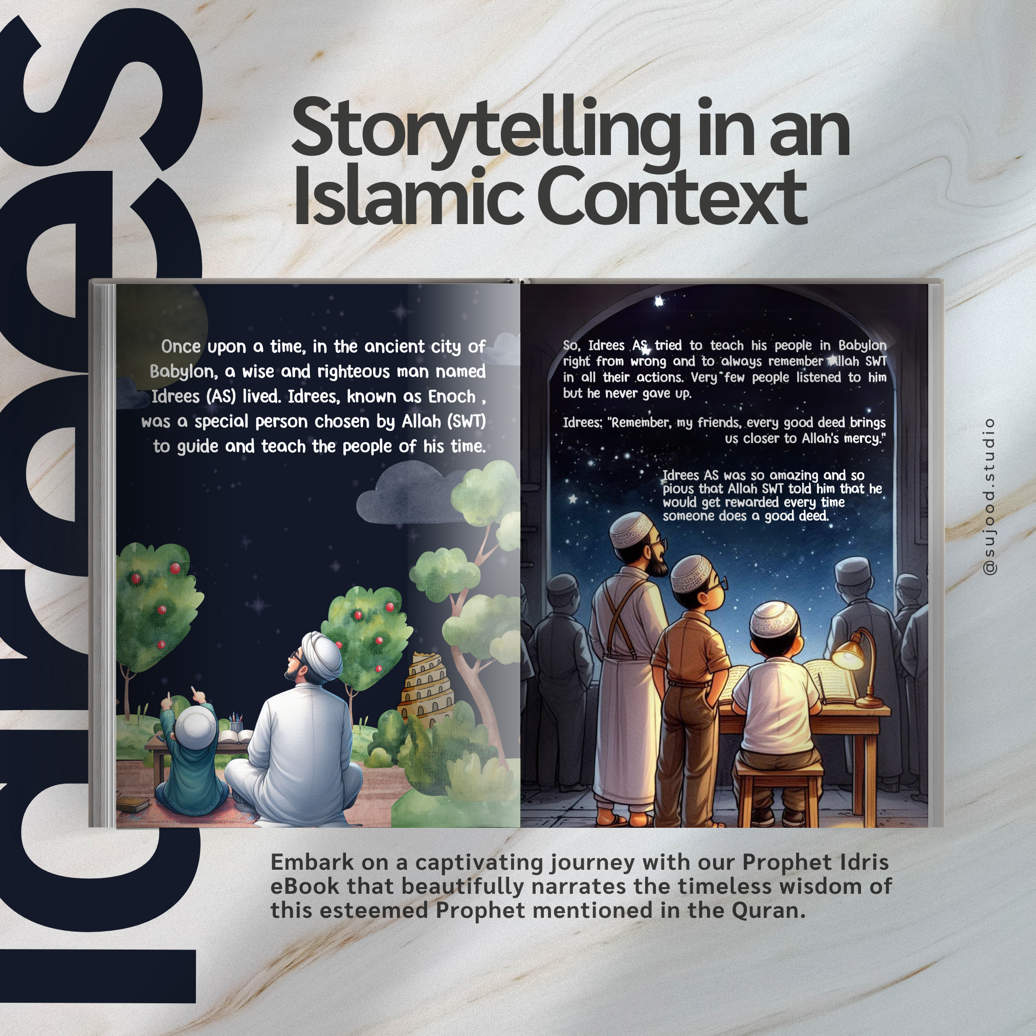 Embark on a captivating journey with our Prophet Idris eBook that beautifully narrates the timeless wisdom of this esteemed Prophet mentioned in the Quran. This eBook provides an engaging and age-appropriate exploration of Prophet Idris's life, teachings, and celestial encounters. Through captivating storytelling, children will learn about his significance in Islamic history and the valuable lessons he shared.
