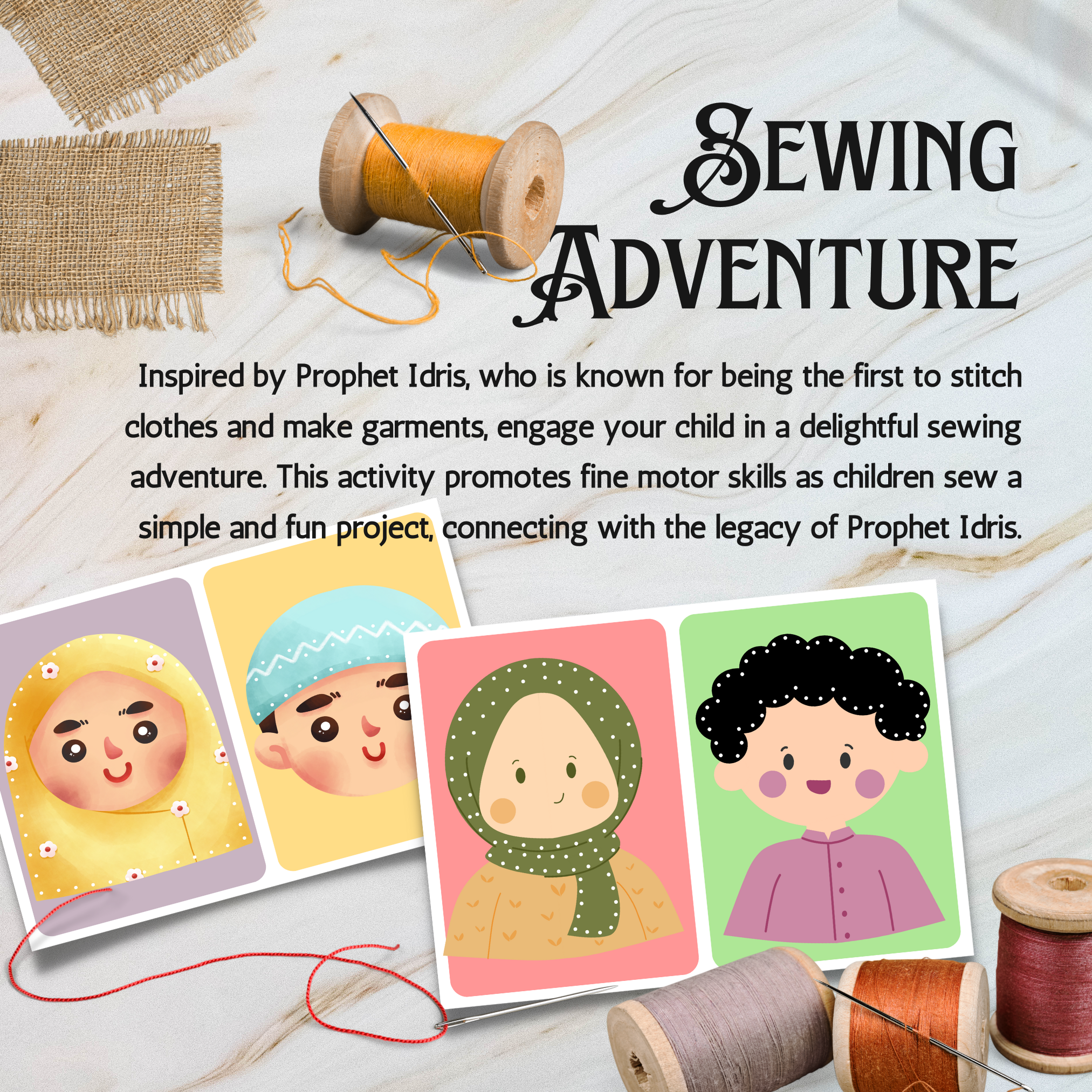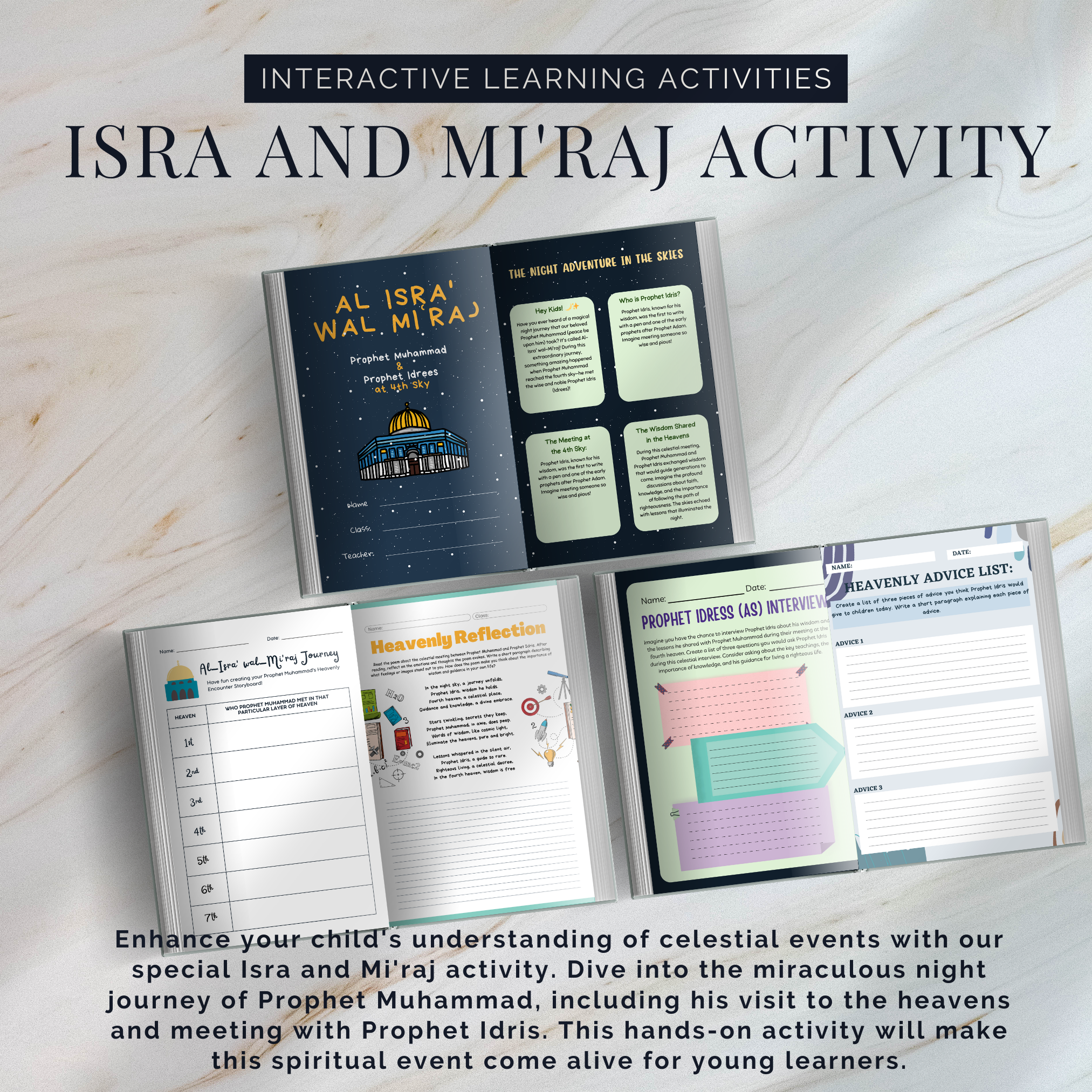 Discover the Wisdom of Prophet Idris eBook, Isra and Mi'raj Activity, Sewing Adventure, Quran Journal, Dua Poster, and Kids Activity Set