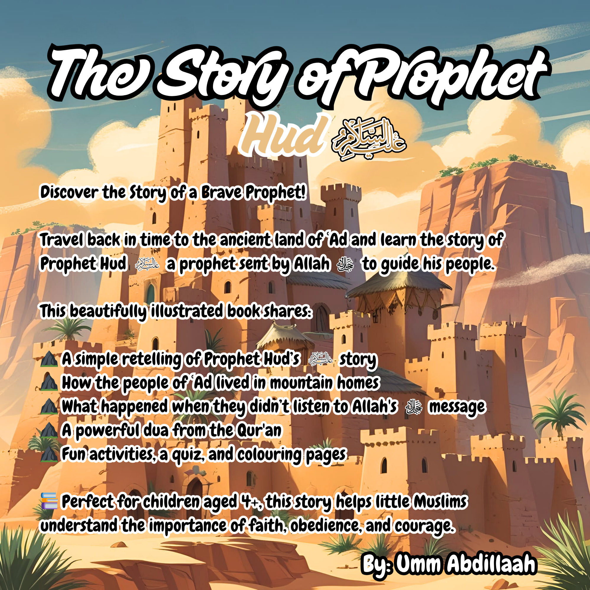 Introduce your children to the powerful story of Prophet Hud عليه السلام — a brave messenger sent to guide the proud and powerful people of Ad.