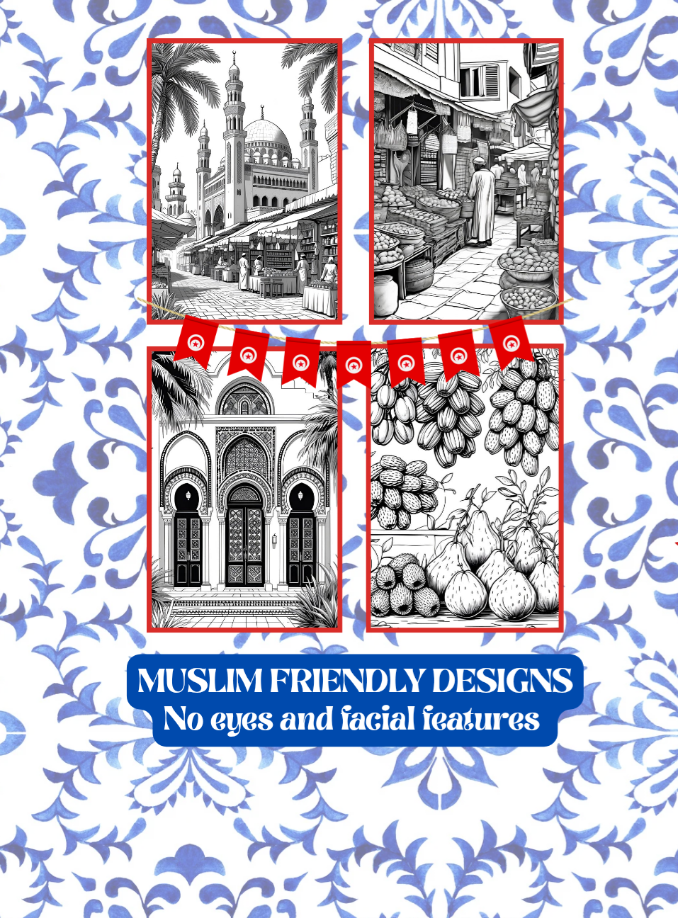 Immerse yourself in Tunisia, a land of turquoise coasts, historic medinas, ancient architecture, and rich Islamic heritage. This Muslim-friendly colouring book is perfect for all ages, from children to adults, featuring carefully crafted pages that celebrate North African beauty, culture, and creativity.