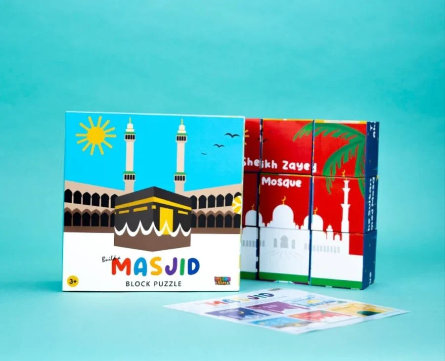 Build a Masjid Block Puzzle includes 9 colourful blocks with 6 fun illustrations of Masjids from around the world. Turn the blocks in the right direction to complete the picture. These blocks are beautifully illustrated with images and names of the different Masjids to play and learn. Perfect for developing motor and problem solving skills. Play in various ways, whether its to stack towers, complete a picture or as decoration in the nursery.