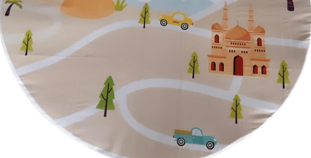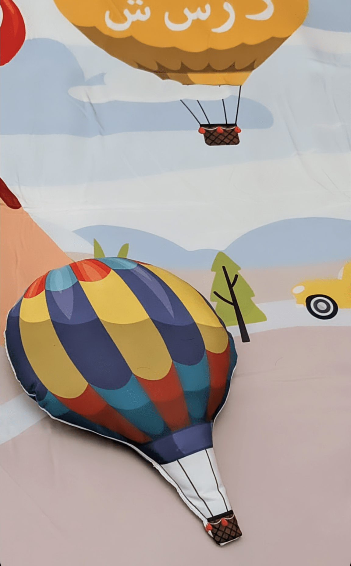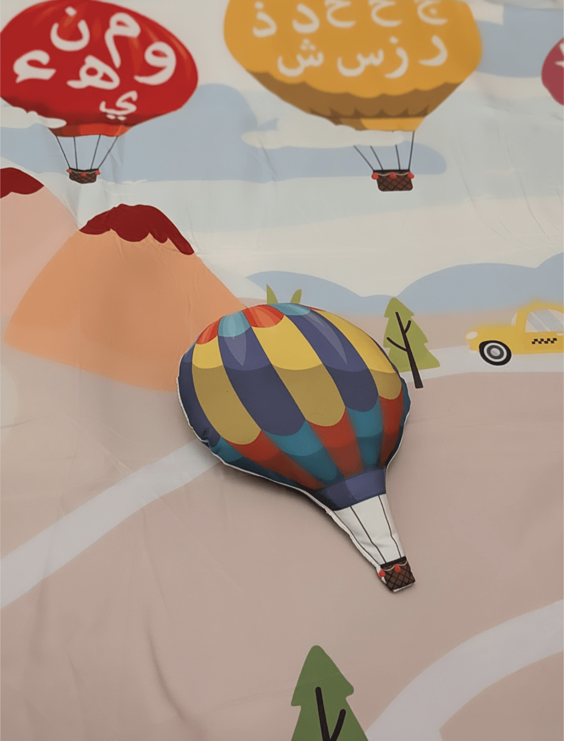 Enhance your child's playtime with our colourful Arabic Alphabet playmat featuring a beautiful hot air balloon design.