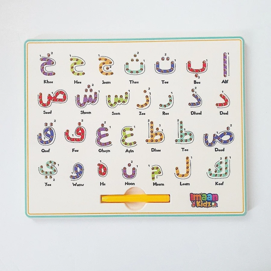 The Arabic Alphabet Magpad is a magnetic board that teaches children to read and write the Arabic Alphabet.