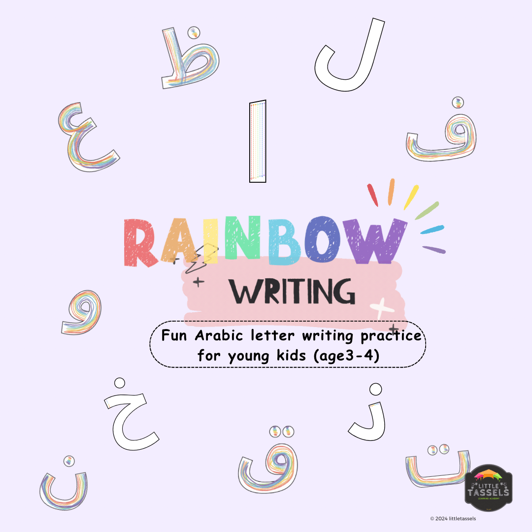 Arabic alphabet RAINBOW writing practice will enable the kids to practice writing through fun coloring.