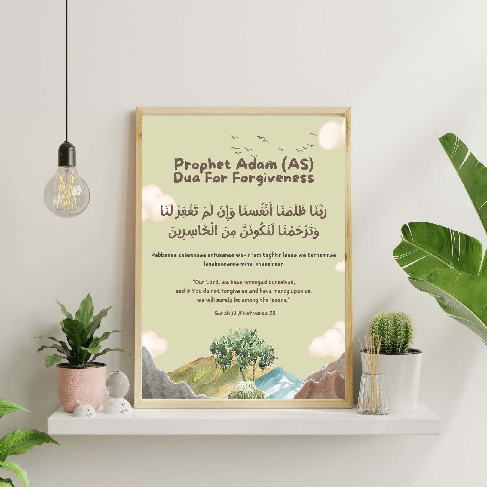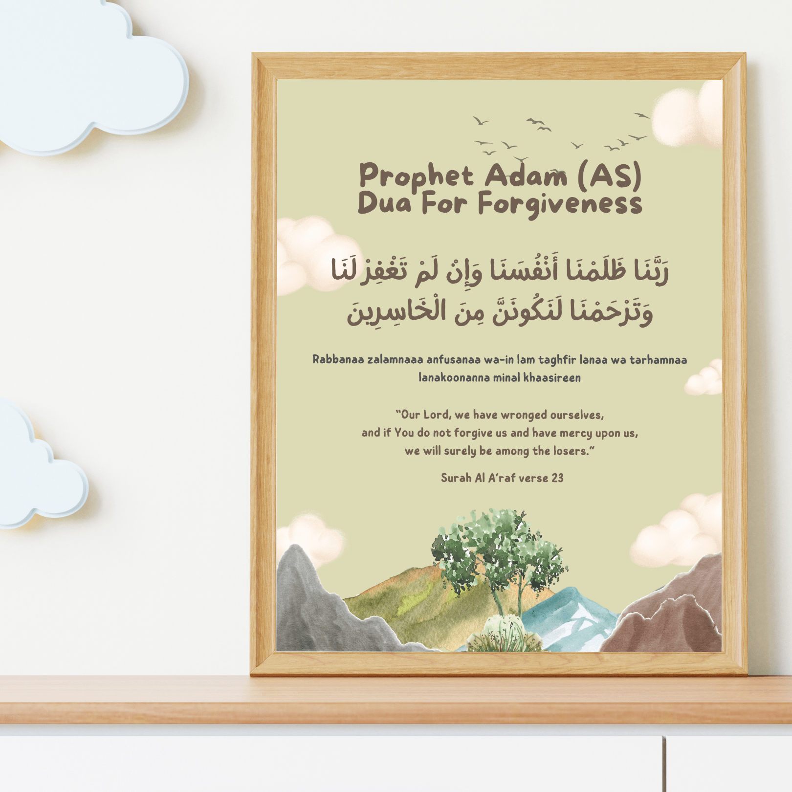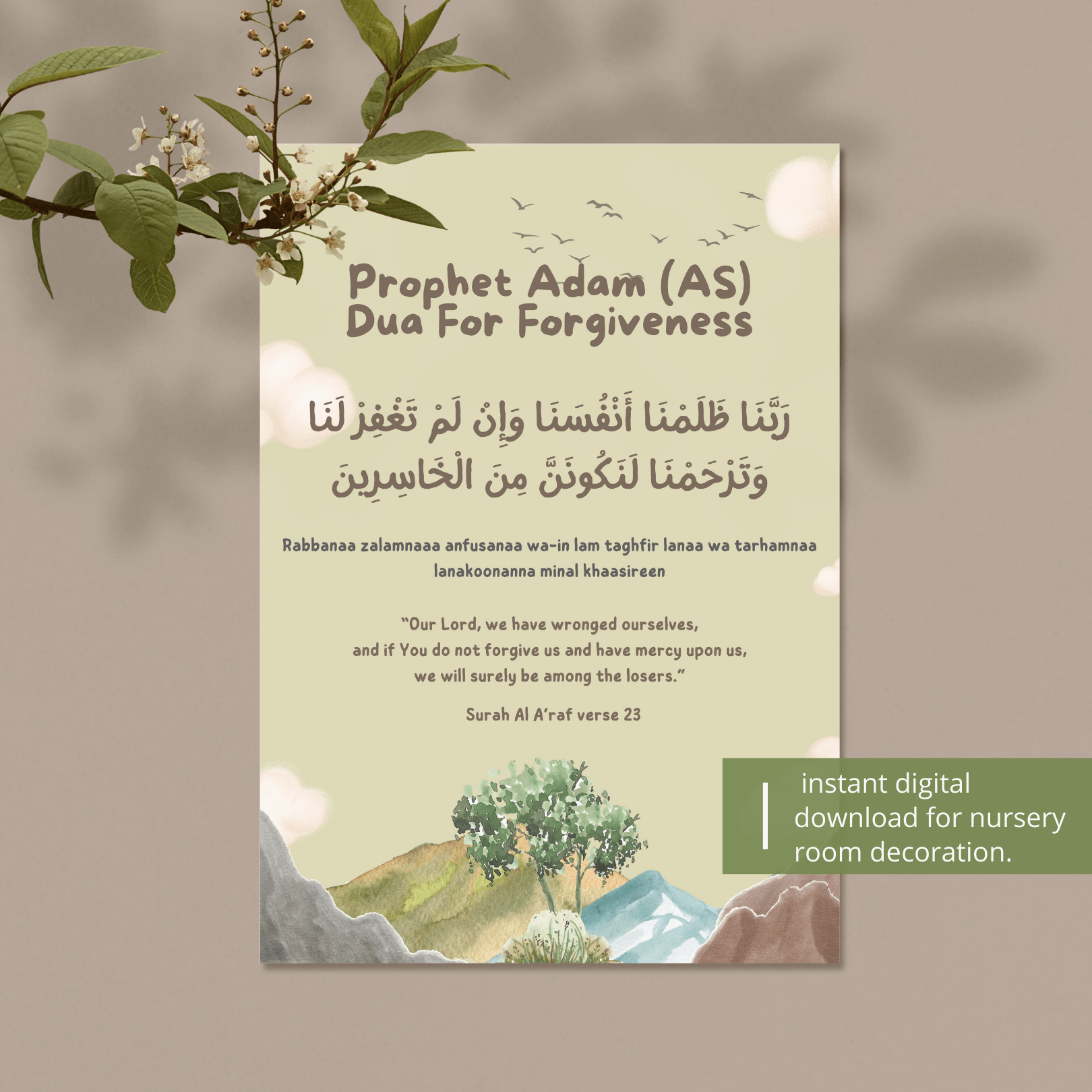 Transform your child's surroundings into a haven of faith and inspiration with our Dua of Prophet Adam (AS) for Children Islamic wall art digital prints. Order now and let the blessings of this sacred supplication adorn your home.