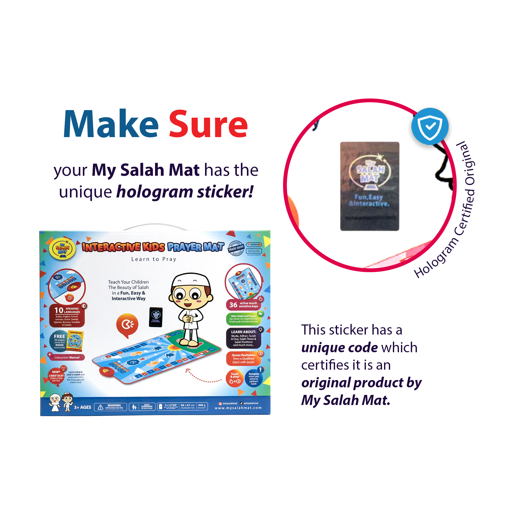 Make Salah engaging and easy to learn with our innovative prayer mat, designed to provide a hands-on learning experience for little Muslims. Now featuring a 2 Rakat Salah Translation, your child can hear and understand the meaning of their prayers, making their learning journey even more meaningful. From performing Wudu to reciting the final Tasleem, this mat simplifies the process and makes it fun for children to take their first steps in Salah.