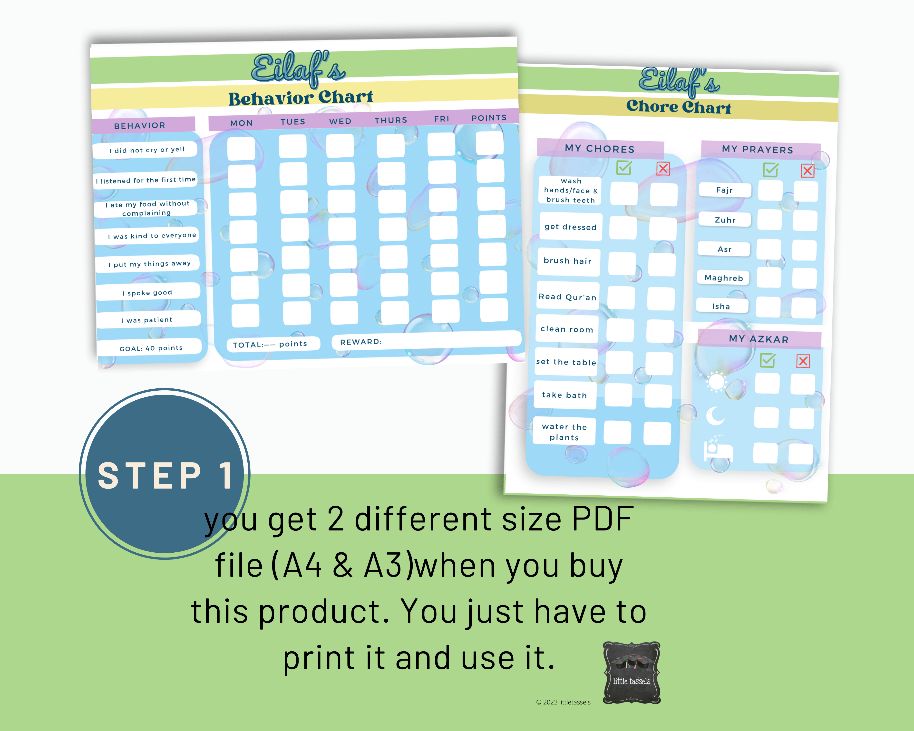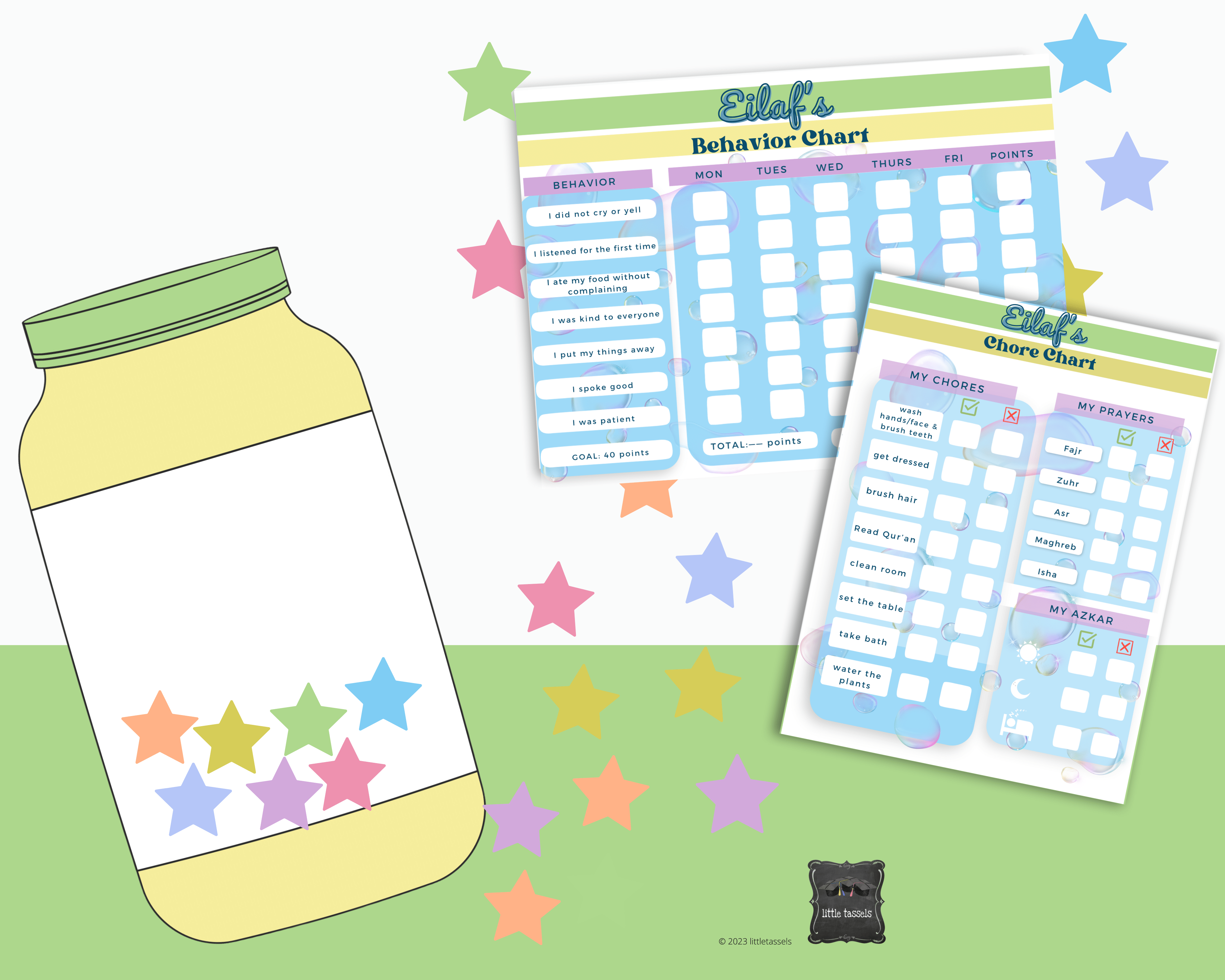 **through a Behavior Chart, Daily Chore Chart, Salah and Azkar Tracker, while motivating with a rewarding star-based system.