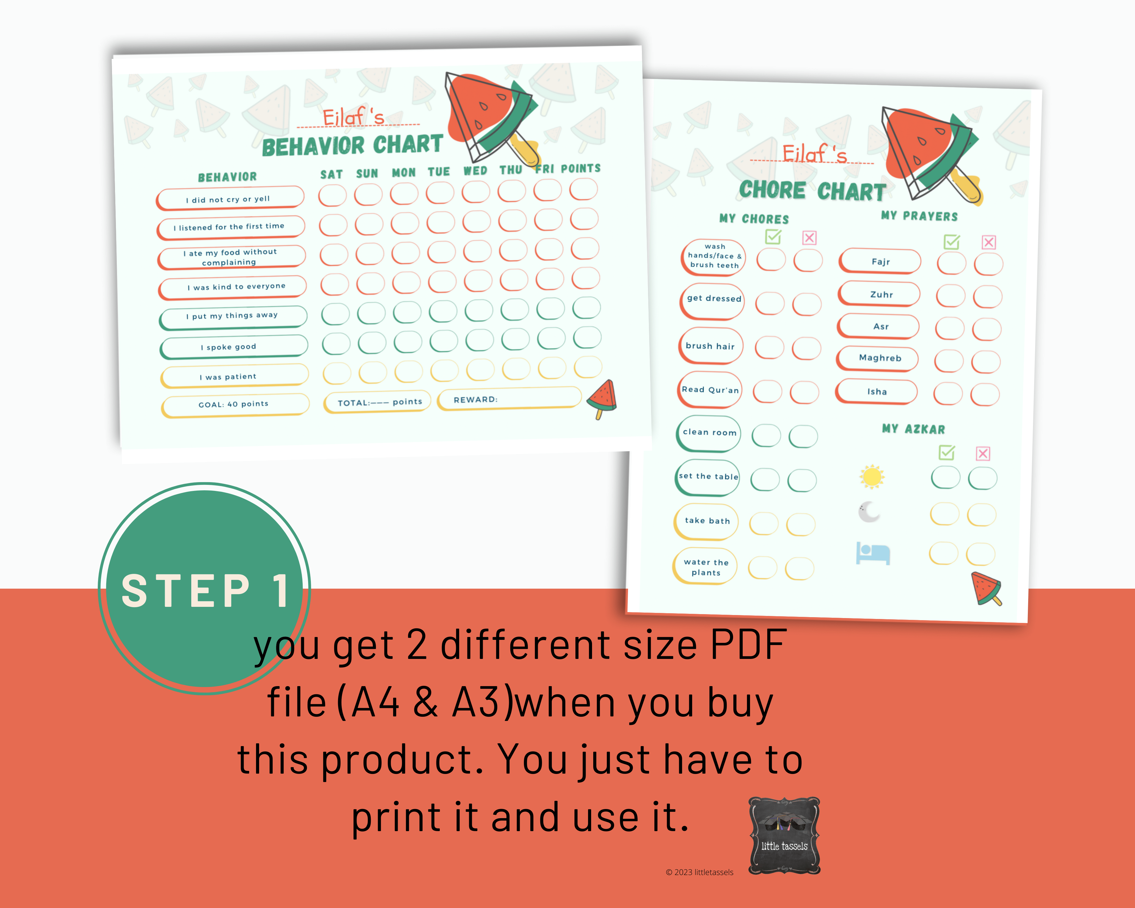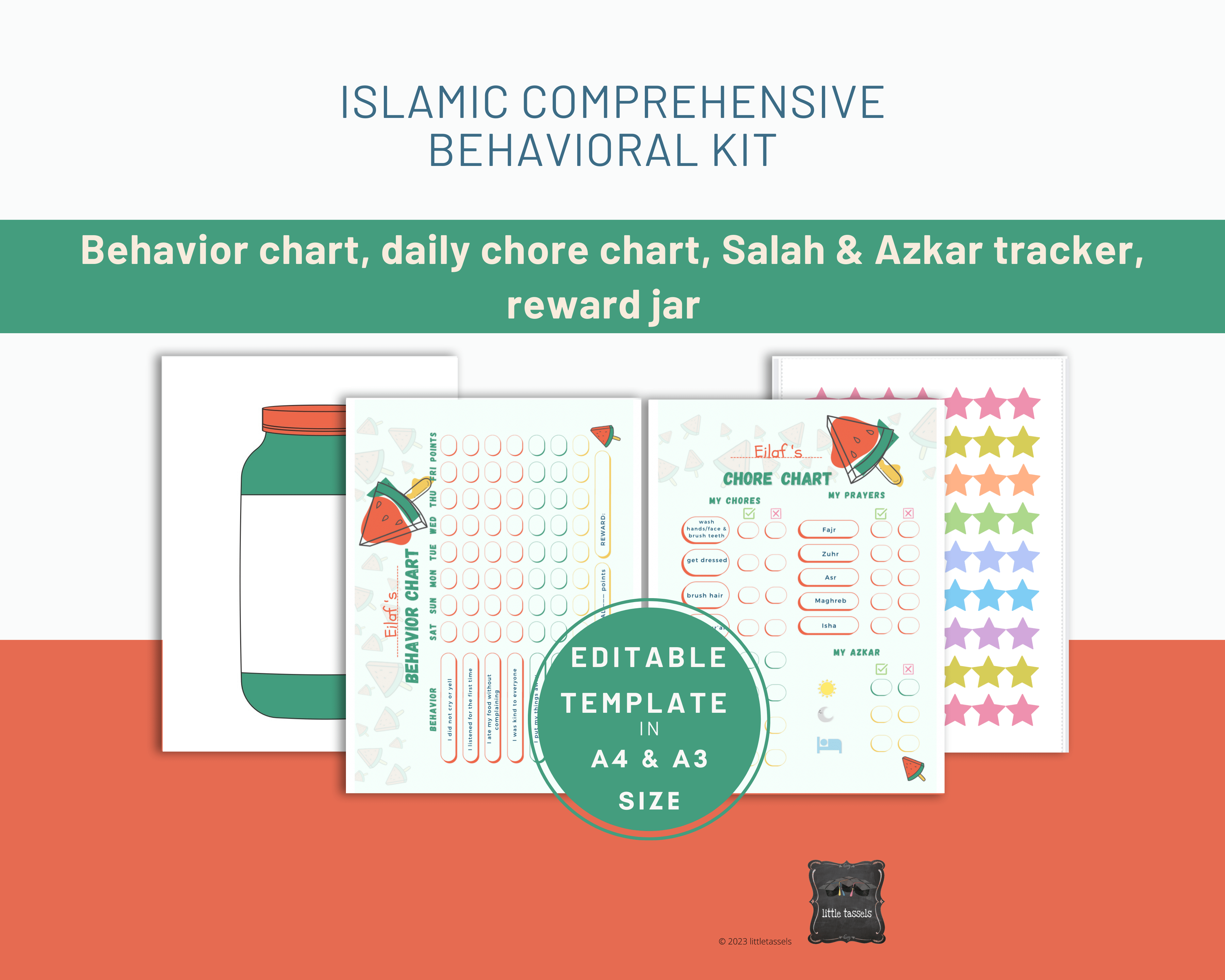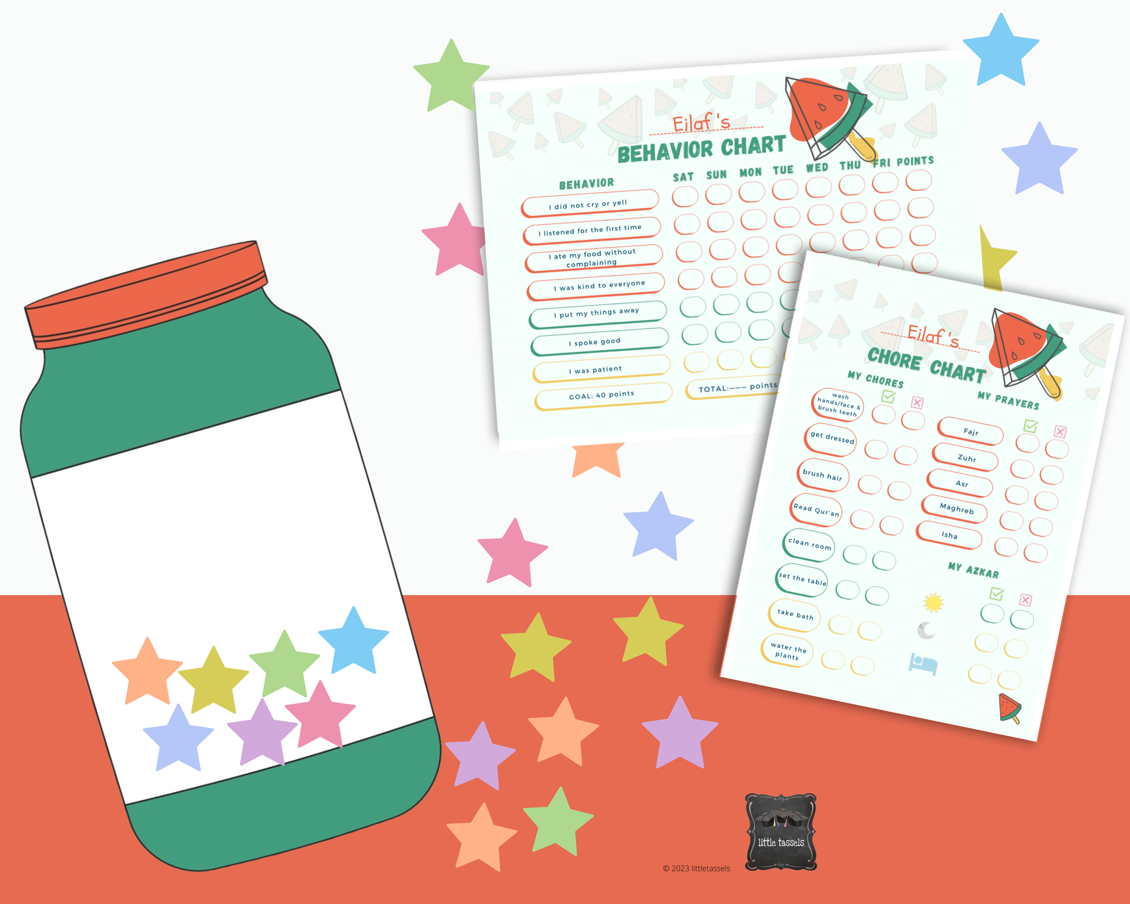 **through a Behavior Chart, Daily Chore Chart, Salah and Azkar Tracker, while motivating with a rewarding star-based system.