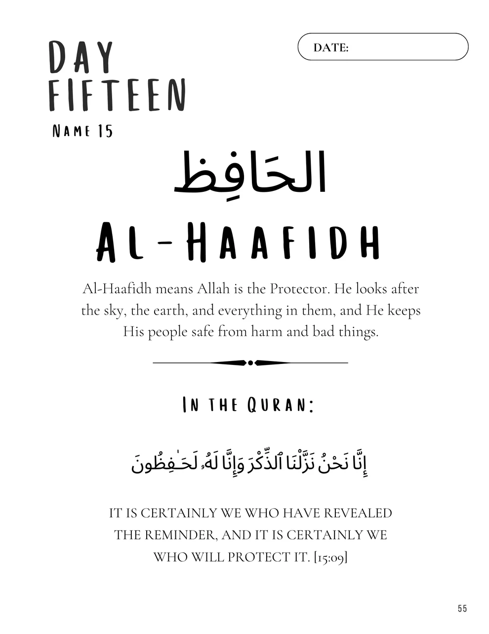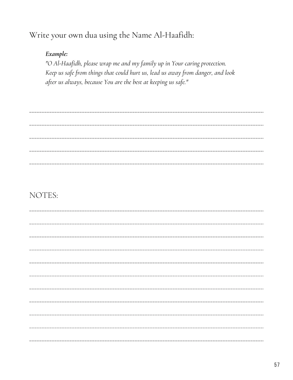 - Supplication Section: A special space to write prayers asking Al-Haafidh for protection and guidance.