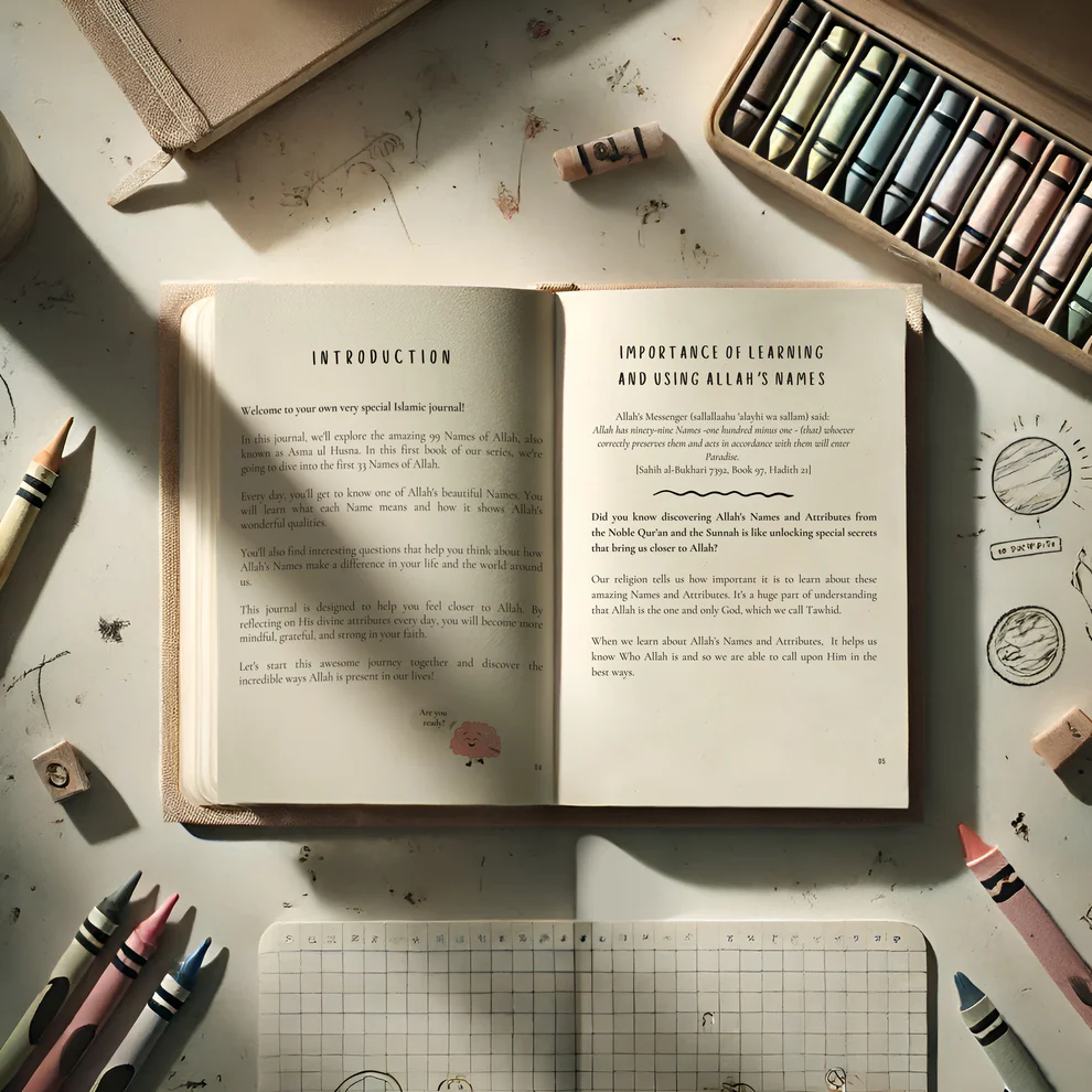 Our kids’ journal series is designed to be more than just a place for writing; it’s a companion for young Muslims to learn, reflect, and grow closer to Allah. With each journal, children will find new ways to connect with the divine attributes of Allah and apply these lessons in their daily lives.
