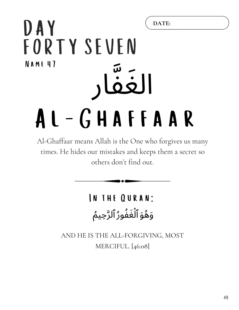 - Supplication Section: A special space to write prayers asking Al-Ghaffaar for forgiveness and guidance.