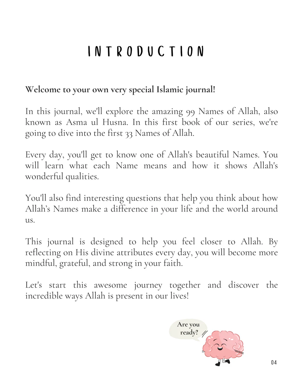 Embark on an enlightening adventure with the "99 Names of Allah Reflection Journal for Kids," the third of three engaging journals designed to help young Muslims explore and connect with Allah’s beautiful Names. This special Islamic journal is perfect for kids to grow in their faith and learn more about Allah in a way that is easy to understand and reflect on. It's also a fantastic way to introduce children to the Quran.