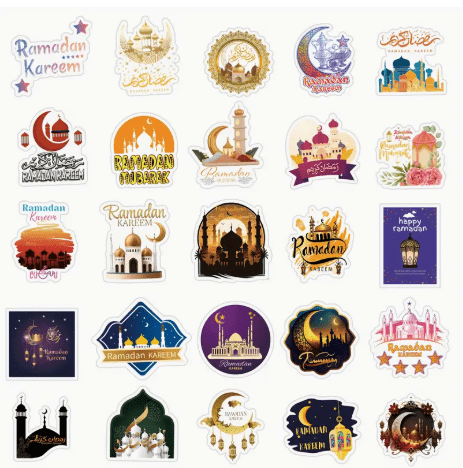 Islamic Vinyl Stickers - Waterproof, Single Use Decals for Laptop, Water Bottle, Phone, Skateboard, Luggage, Guitar - Muslim Decorations, Diverse Shapes, for Ages 14+