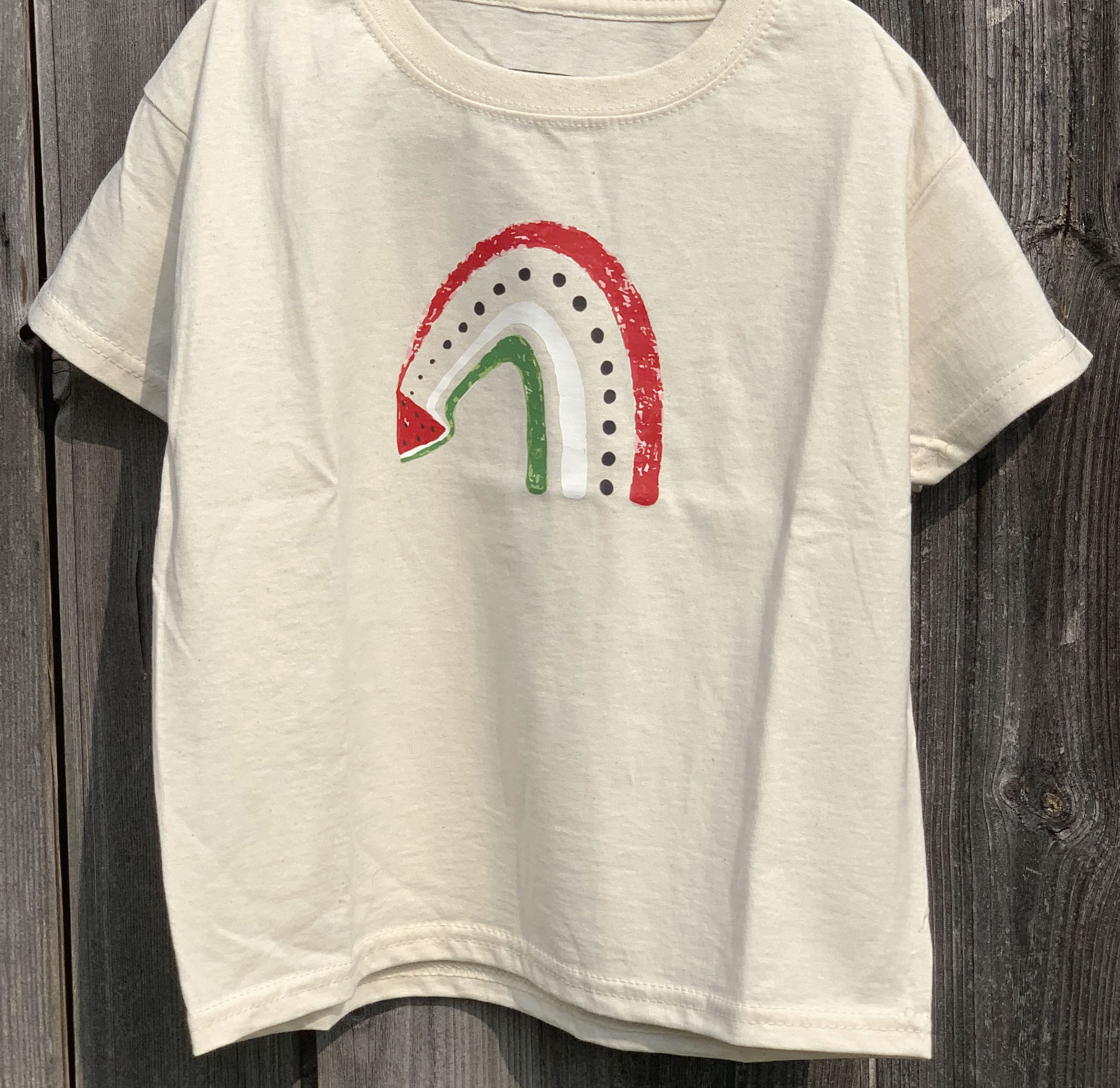 Embrace solidarity with this vibrant and meaningful t-shirt. Featuring a unique design of a rainbow emerging from a watermelon, adorned with the iconic colours of the Palestinian flag, it symbolises hope, resilience, and unity.