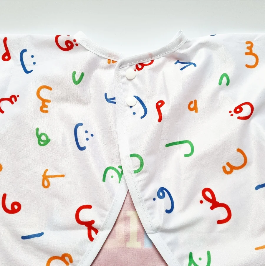 - Cute and colourful, they come with elasticated cuffs on the end of long sleeves that help keep baby clean and a waterproof fabric to protect clothing. Perfect to pair alongside our Islamic tableware sets.