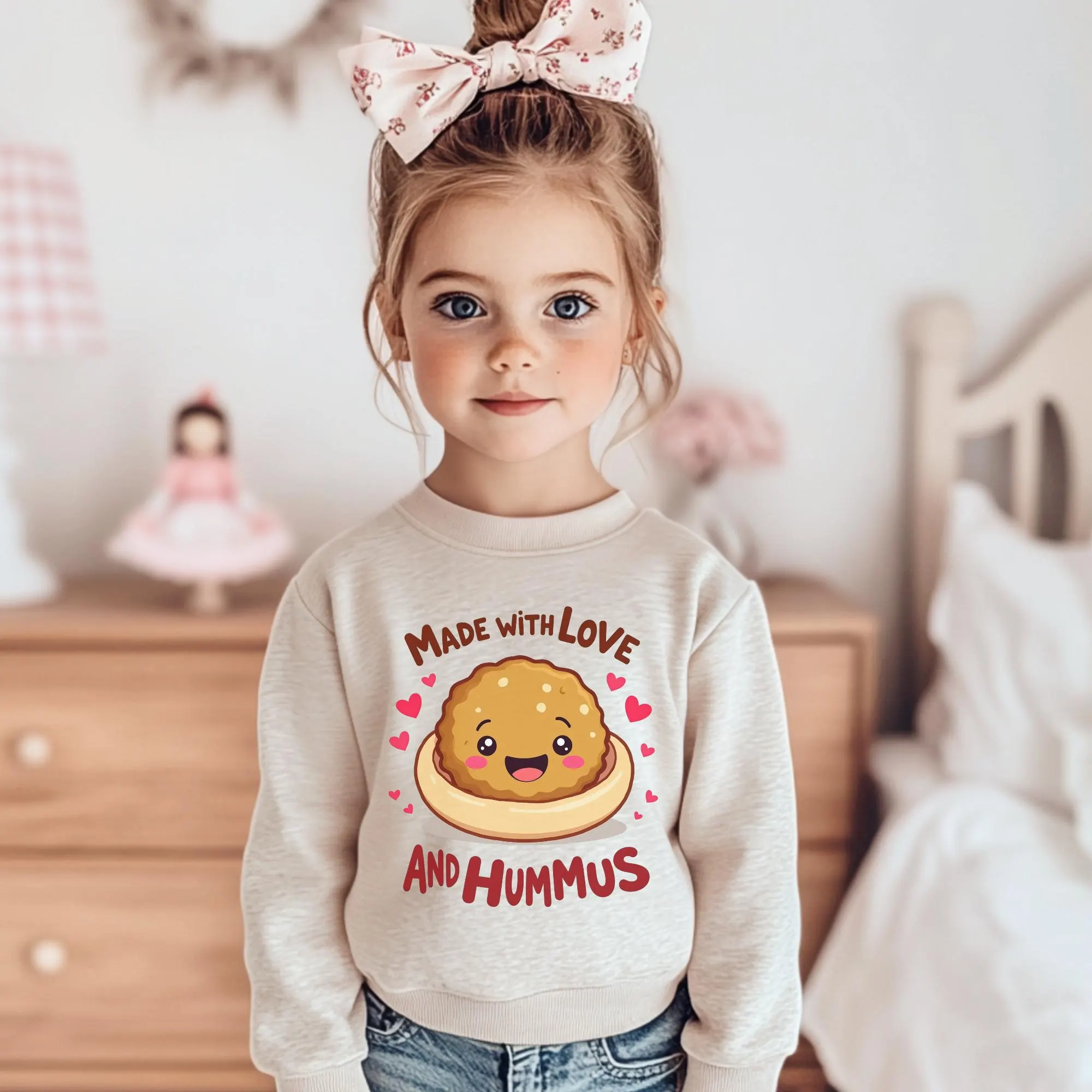 Toddler Sweatshirt – "Made with Love and Hummus" Falafel Design