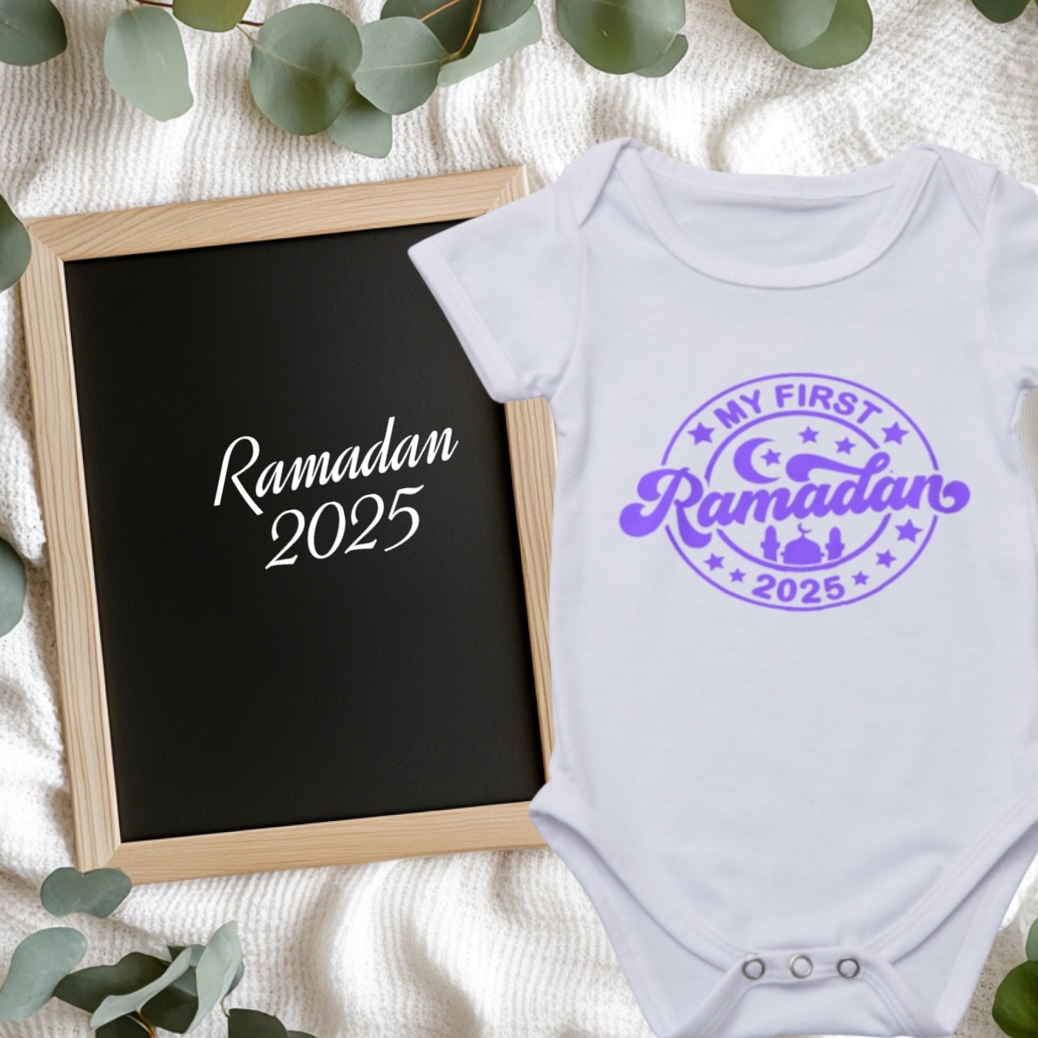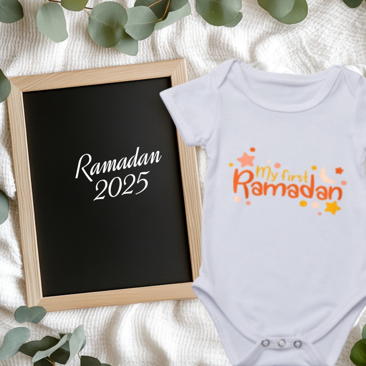 Celebrate your little one's first Ramadan with our Personalised Ramadan Bodysuit. Crafted with love and care, this soft, comfortable bodysuit is the perfect way to mark such a special occasion. Featuring a sweet and thoughtful design, it can be personalised with your baby’s name, making it a unique keepsake for years to come. Whether for a gift or your own little one, this bodysuit is a beautiful gift for Ramadan!
