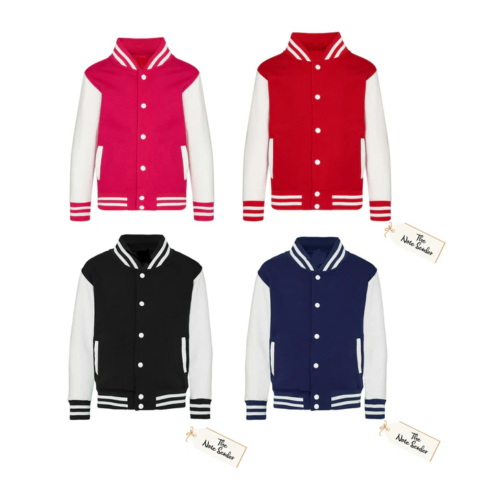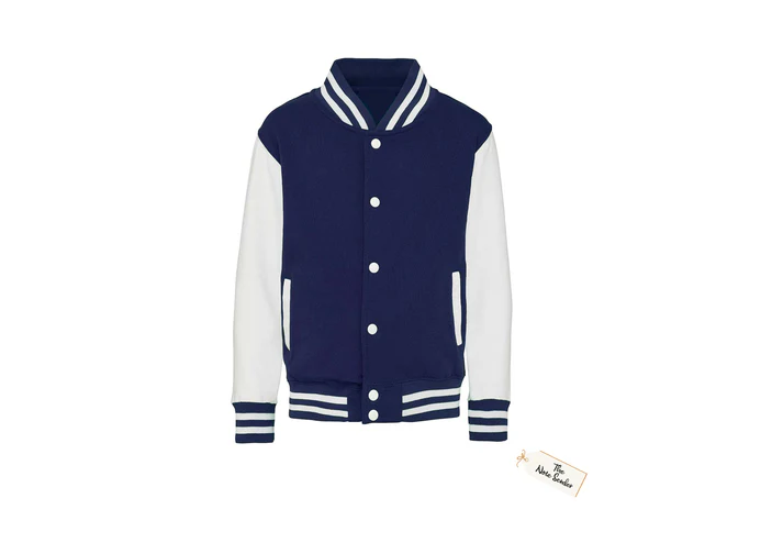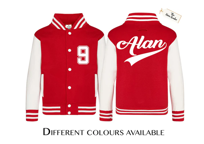 Unisex Personalised Childrens Varsity Jacket Back and front with Name and Number at front