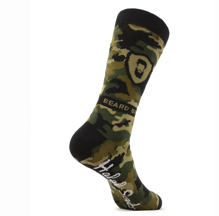 Step up your entire game with this unexpected camo pattern. Anything goes with these comfortable, fashionable Camo Beard Bro socks. Weekend or workday. You decide.