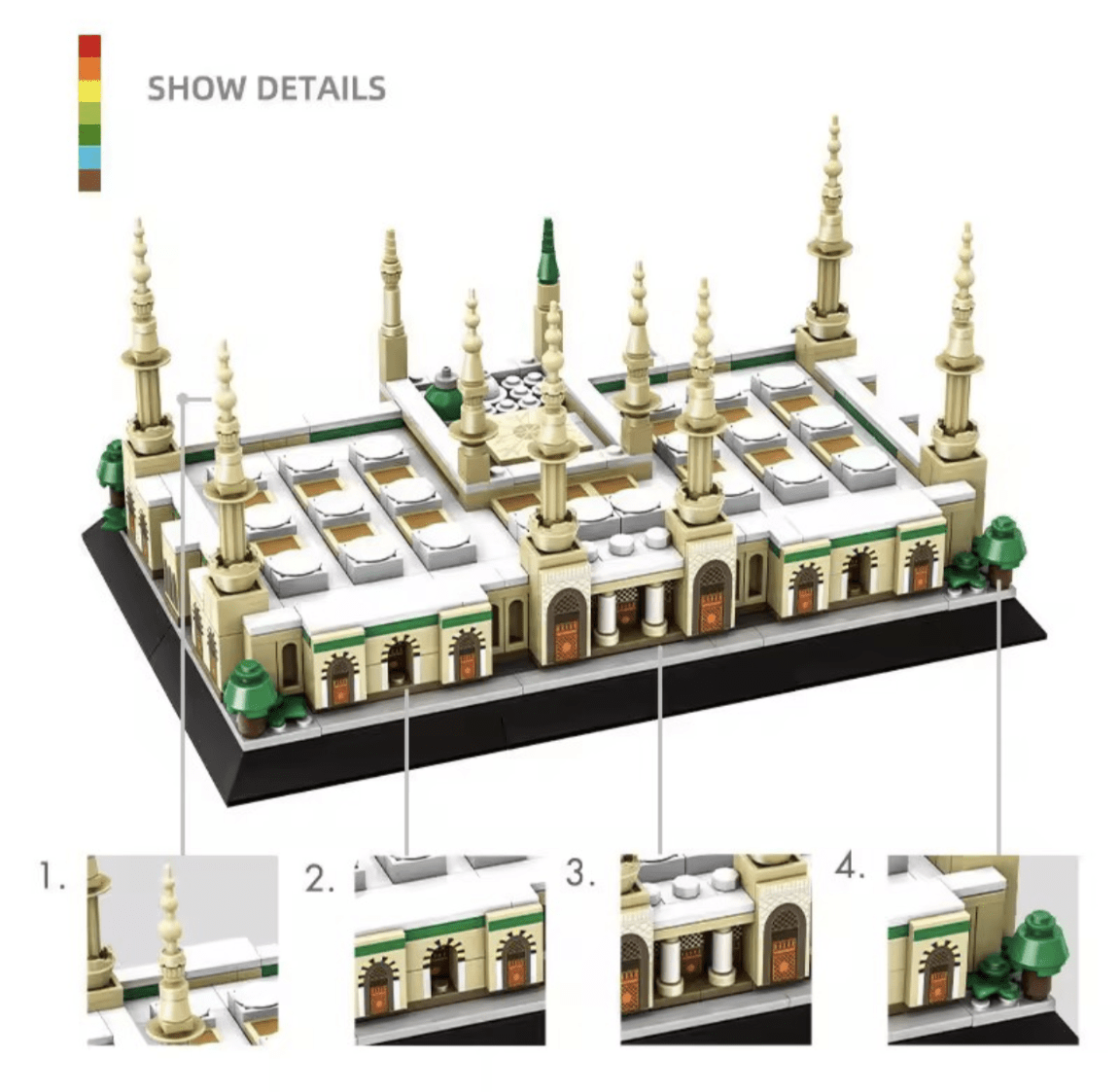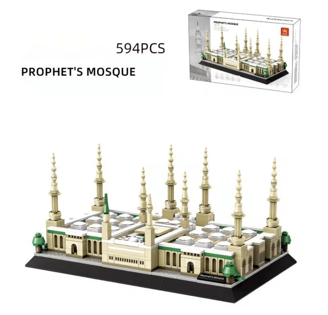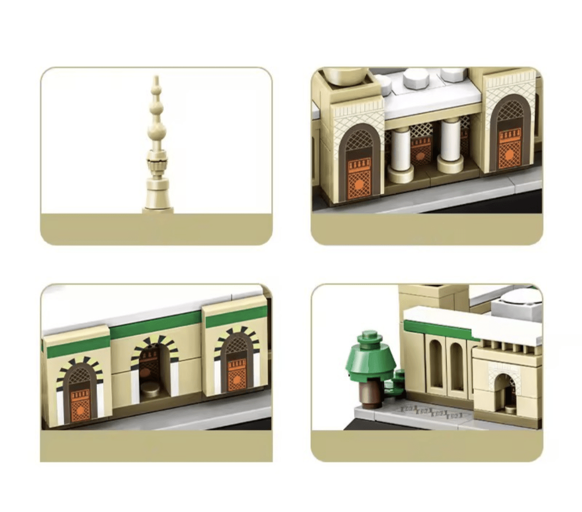 Discover the architectural marvel of the Prophet's Mosque with the Masjid an Nabawi Model Islamic Building Bricks/blocks. With 594 pieces carefully crafted to mimic the intricate details of the iconic mosque in the holy city of Madinah, this set is an engaging tool for learning and exploration.