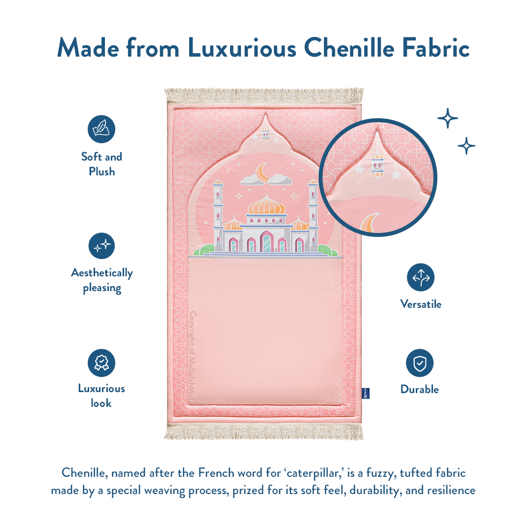 Crafted with velvety-soft fabric and 1.3 cm thick padding, this junior prayer mat provides excellent comfort and support, making every prayer feel special. The three-layer construction ensures durability, while the engraved detailing adds a charming, elegant touch.