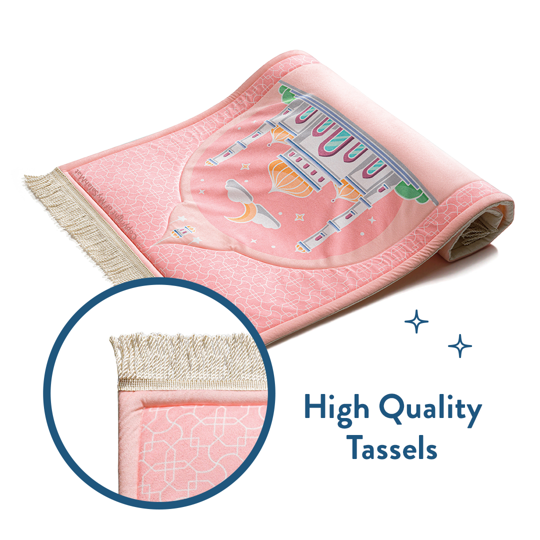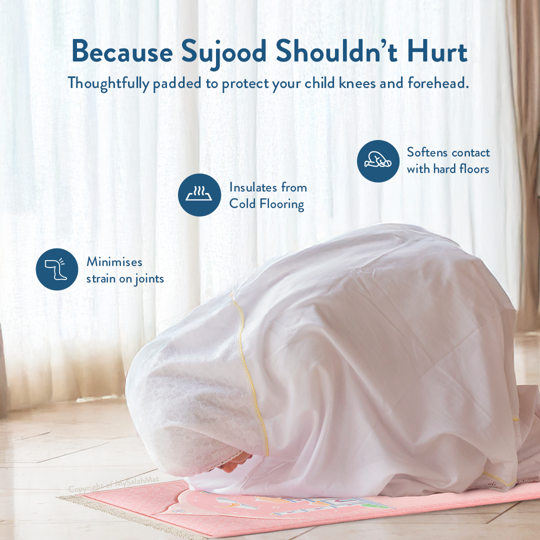 Encourage your little girl to embrace salah with the Padded Kids Prayer Mat with Blush Pink Design. Designed especially for girls, this prayer mat features a soft blush pink colour with delicate, engraved designs, creating a serene and stylish space for prayer.