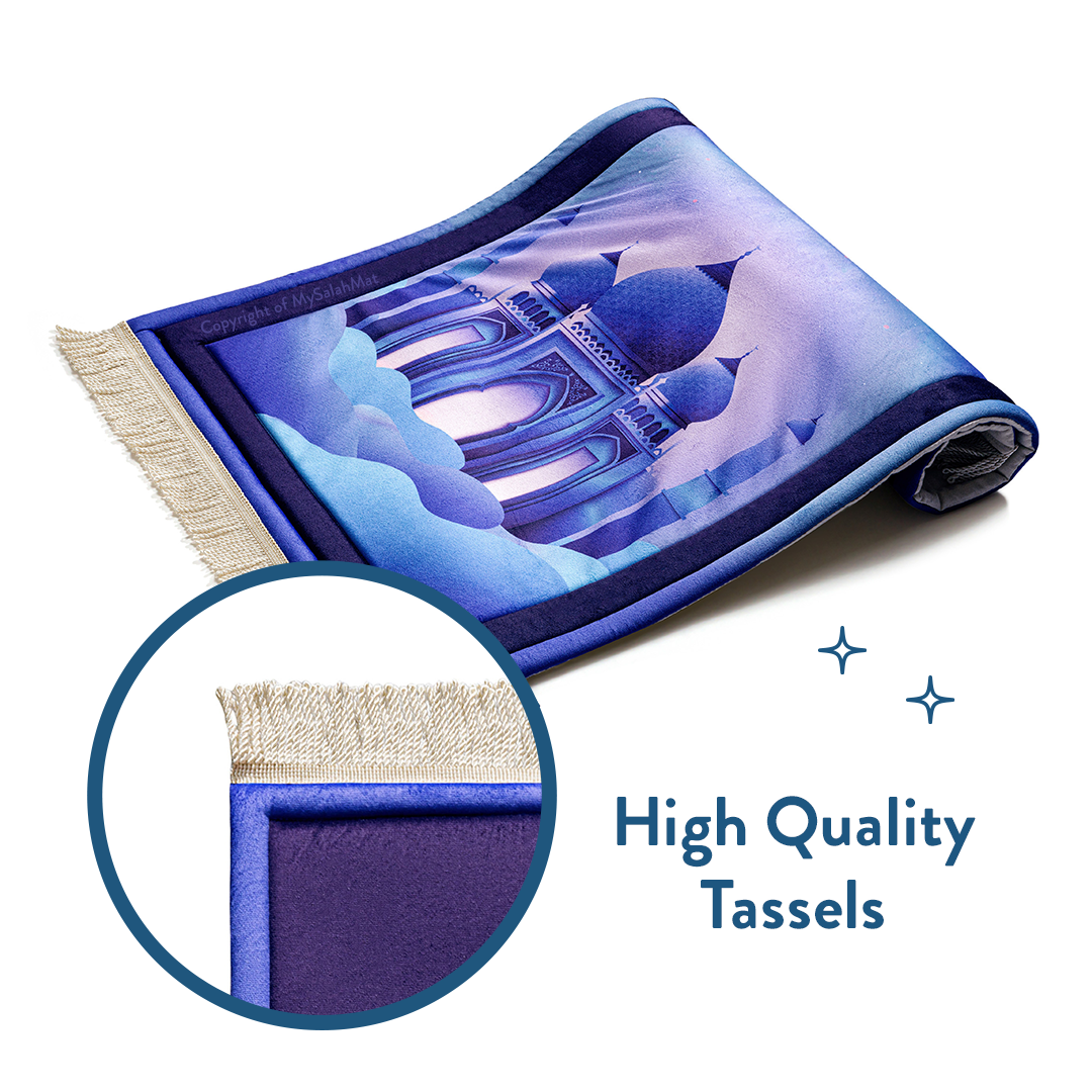Inspire your child’s spiritual journey with the Padded Kids Prayer Mat with Twilight Masjid Design. This beautifully crafted mat features a soft twilight-themed design, evoking the serenity and peace of the Masjid, making it a perfect addition to your child's prayer routine.