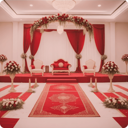 For the Mehndi ceremony, vibrant marigolds, colourful drapes, and fairy lights set a festive mood. The Nikkah ceremony often features elegant white and gold themes with floral arches and soft lighting. The Walima is usually grand, with rich colours like red, gold, and green, traditional chandeliers, and floral centrepieces. Each event has its unique style, blending tradition with beauty.