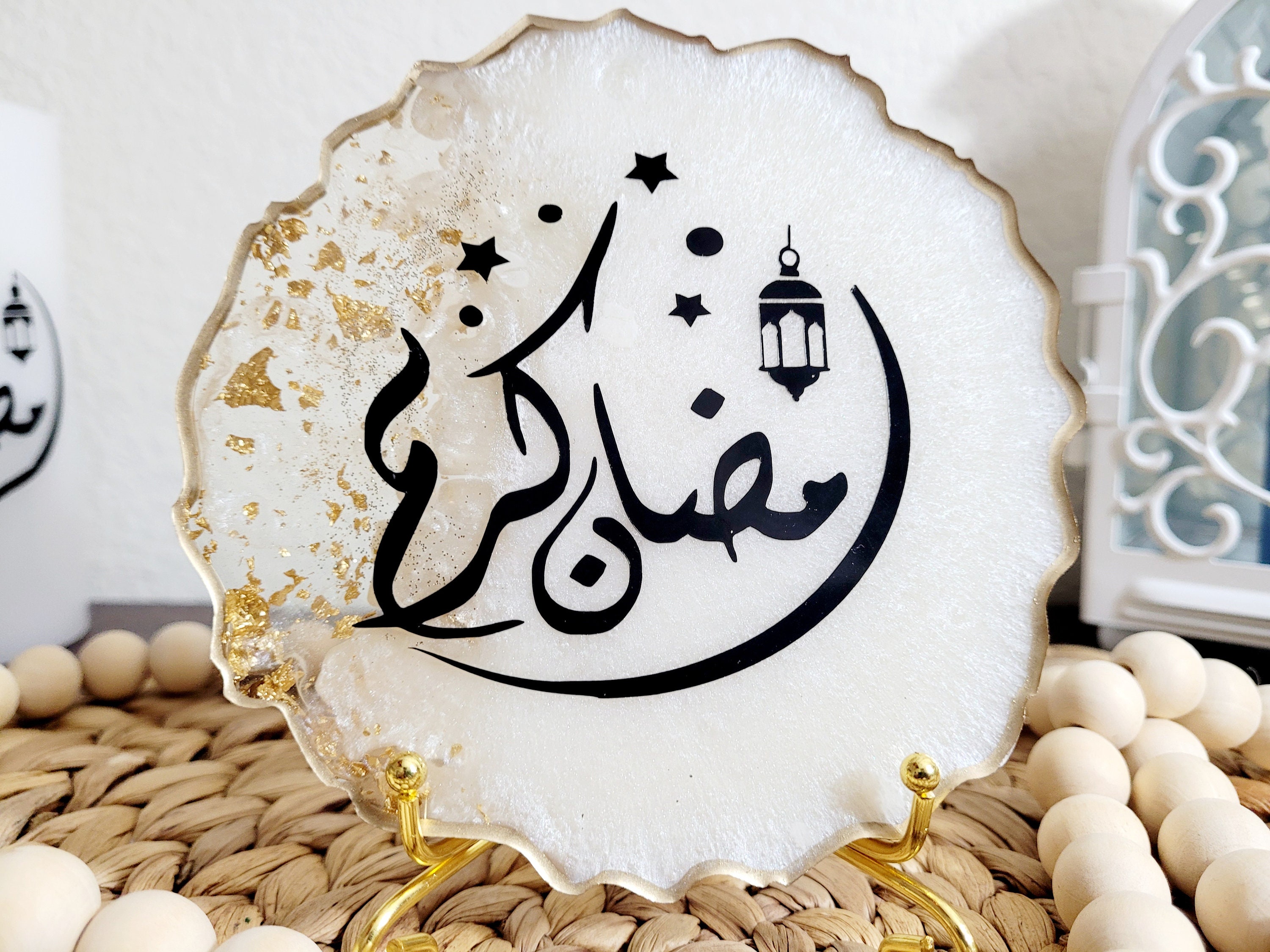 You can find resin trays, coasters, or decorative plaques that beautifully reflect the essence of Ramadan. Some resin pieces even include embedded gold flakes or shimmering details which enhance their elegance. You can place these items on dining tables, prayer corners, or bookshelves to add a sophisticated yet spiritual touch to your space.
