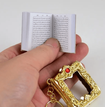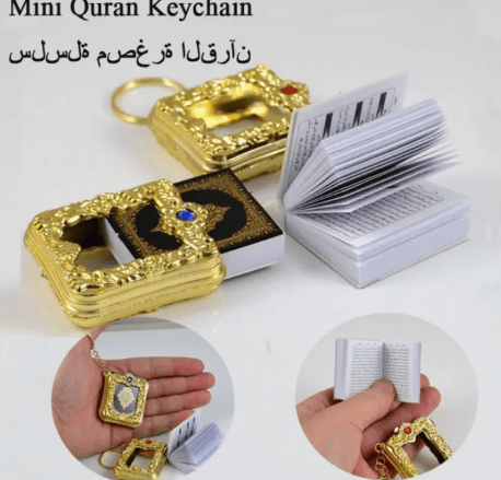 1pc Elegant Islamic Prayer Book Keychain - Golden-Edged with Gemstone Accents, Durable Metal & Plastic, Perfect for Muslim Souvenirs & Party Favors, Religious Gift Item|Ornate Keychain|Plastic Construction