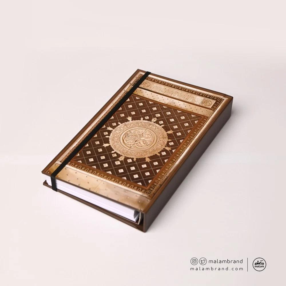 A luxurious notebook with a thick cover with a professional drawing of the noble mihrab of the Prophet (PBUH) printed, with precise details, to be a beautiful memory of Madina.